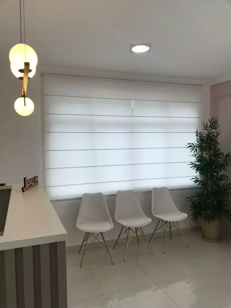 A Persiana Romana Nápoles une elegância e tecnologia. Seu visual moderno com efeito de tecido segmentado em gomos confere sofisticação ao ambiente, enquanto o sistema exclusivo "Easy Touch" com carretilhas proporciona um acionamento suave, durável e moderno.